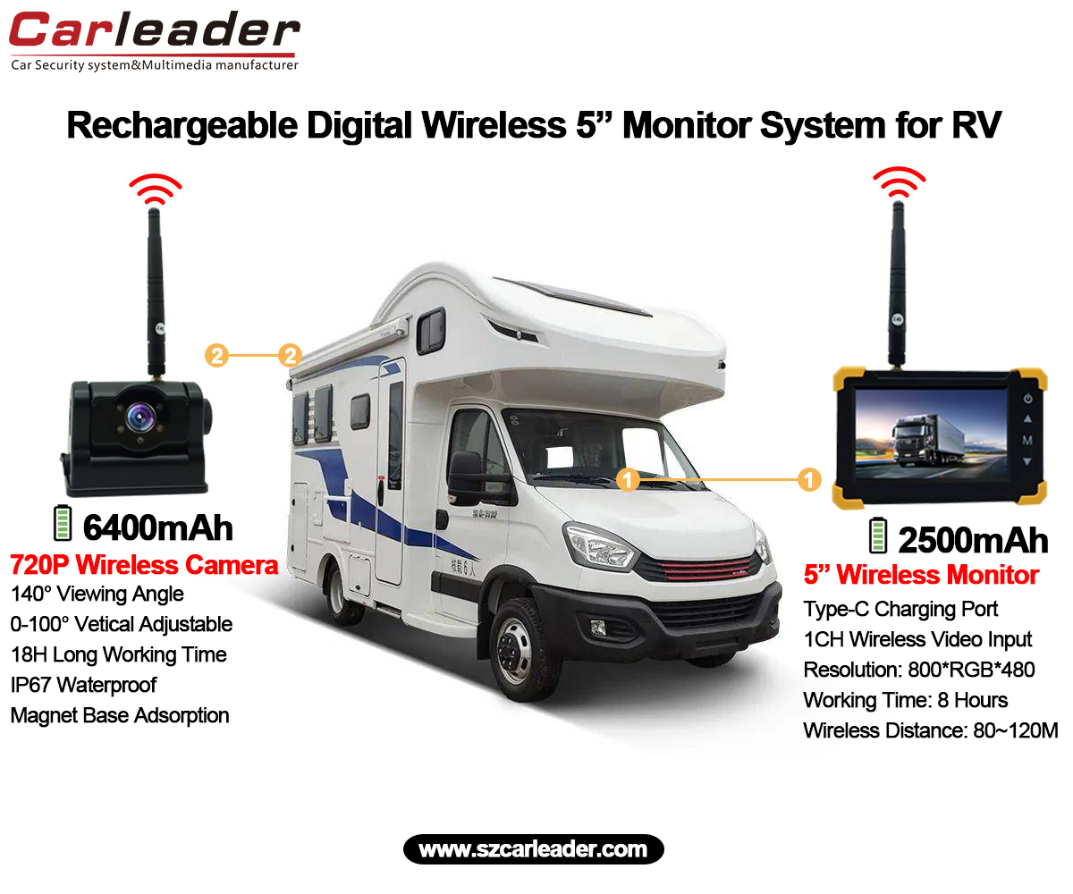 CL-S580MWHD + CL-111D: https://www.szcarleaders.com/rechargable-5-digital-wireless-monitor-system-For-rv.html