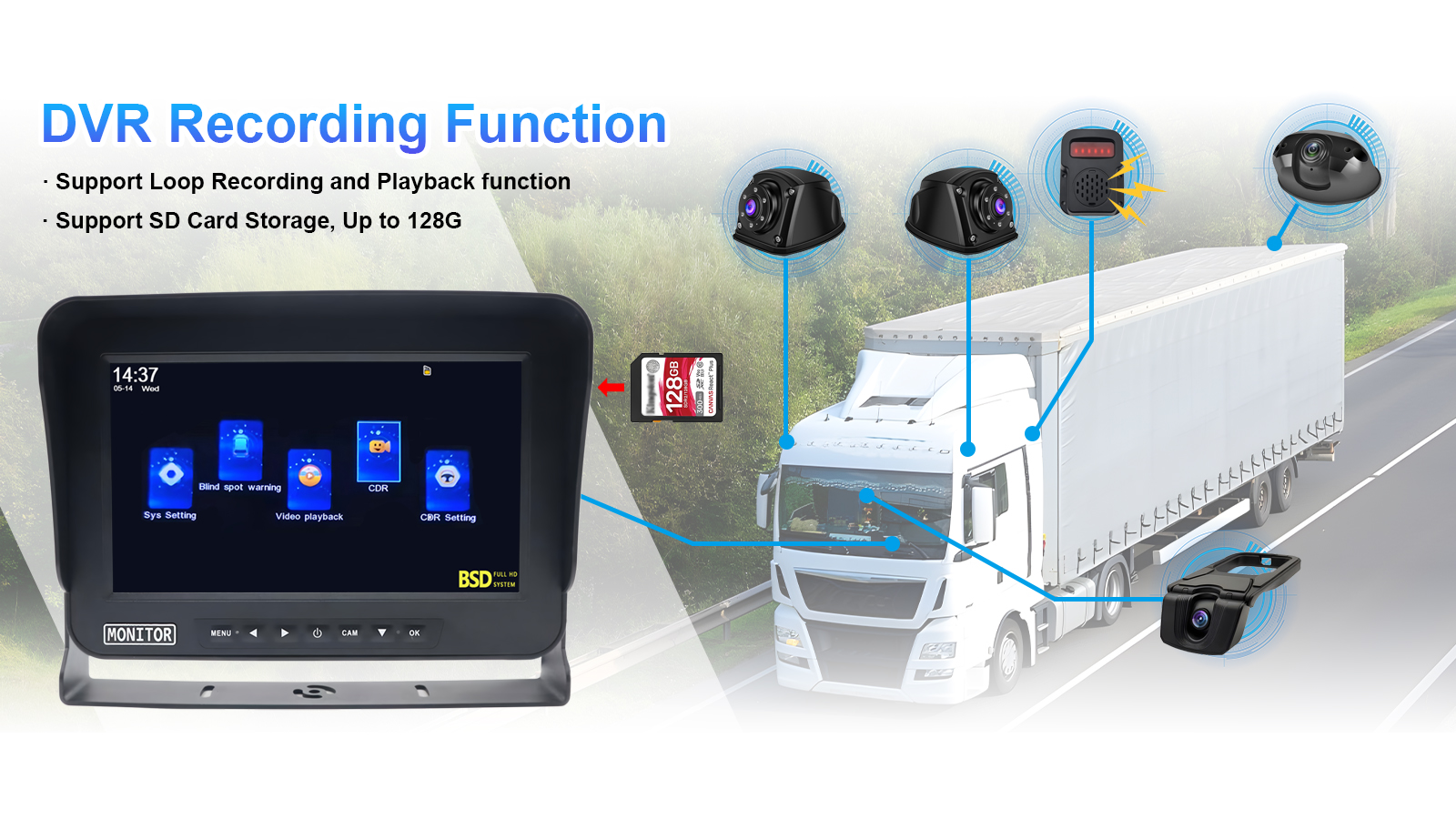 Bateragarritasun polifazetikoa:Carleader 10.1 hazbeteko ibilgailua BSD Blind Spot hautemateko sistema7/8 / 10,1 hazbeteko pantailak, DC 12V-36V Potentzia Sarrera onartzen ditu eta muturreko tenperaturetan funtzionatzen du (-20 ° C eta 70 ° C-ra).