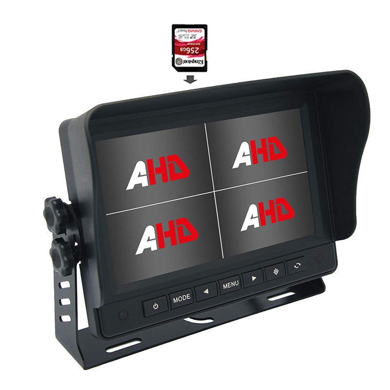 Quad AHD Monitoreak: Gure Quad AHD monitoreek ibilgailuen segurtasuna hurrengo mailara eramaten dute. Lau bideo-iturri aldi berean erakusteko eta grabatzeko gai da, sistema horiek inguruko ikuspegi osoa eskaintzen dute. Kanal anitzeko bistaratze moduekin eta fitxategi independenteen artxibatzearekin, gidariek ibilgailuaren atzeko / aurrealdea / aldea kontrolatu dezakete.