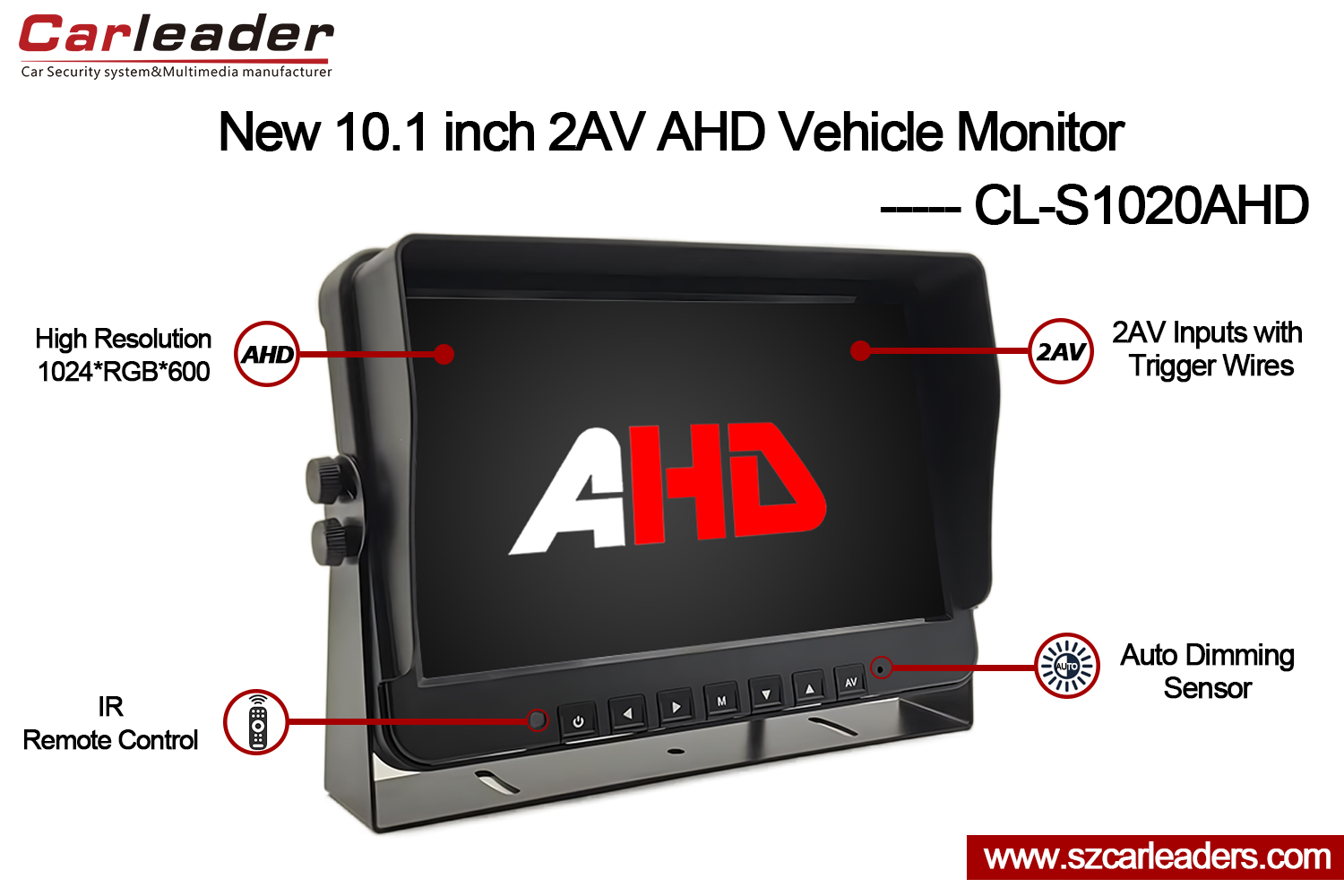 Carleaderharro gaude gurea aurkezteaz 10,1 hazbeteko 2CH AHD Ibilgailuen babeskopia monitorea.