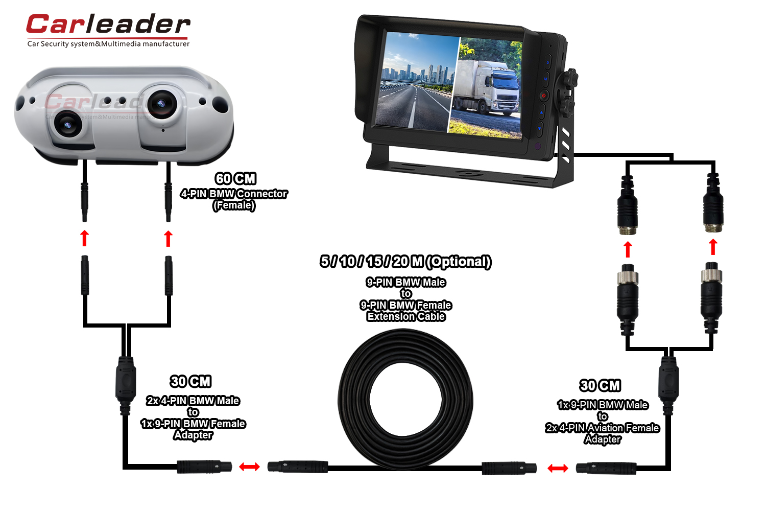 Carleader-ek bi kable-konponbide ezberdin eskainiko ditu AHD Starlight Lente bikoitzeko Atzeko Ikuspegi Kamerari, kable-behar desberdinetara egokitzeko: